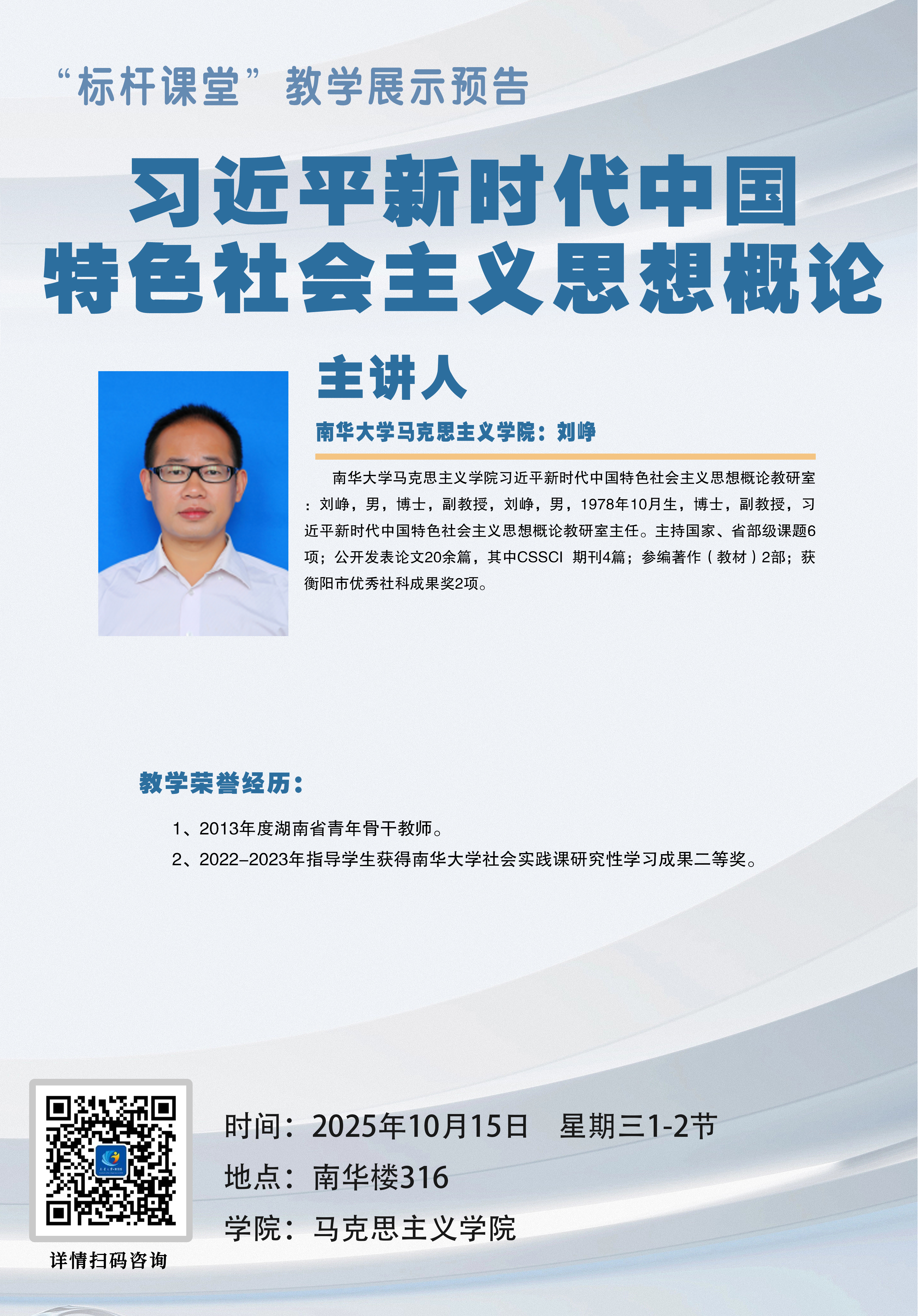 南华大学马克思主义学院习近平新时代中国特色社会主义思想概论教研室 刘峥