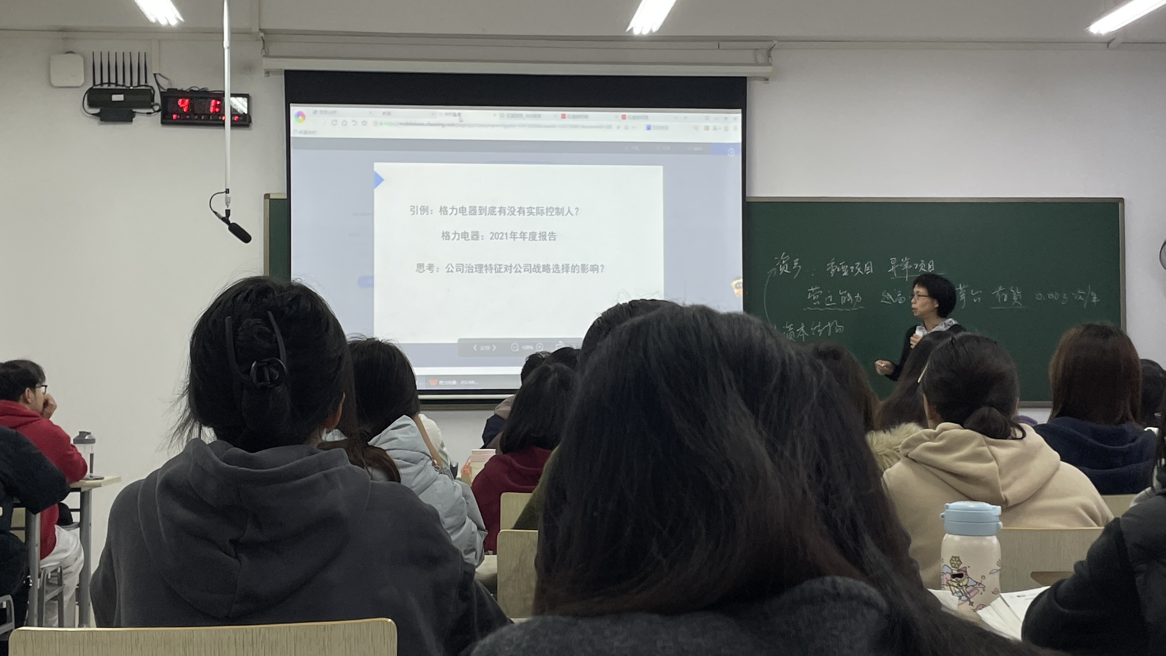 课堂伊始,郑槐淼老师并未直接切入抽象的理论概念,而是以“格力电器到底有没有实际控股人”为开篇案例,瞬间抓住学生注意力。“从格力电器的年报数据中,我们能发现其资本构成有哪些特点?公司治理特征对公司战略选择有什么影响?”带着这样的问题,郑老师引导学生仔细研读格力电器2024年年报中的资本构成数据,通过对比分析自然引出“资本结构”的核心定义,让抽象概念在具体场景中落地。