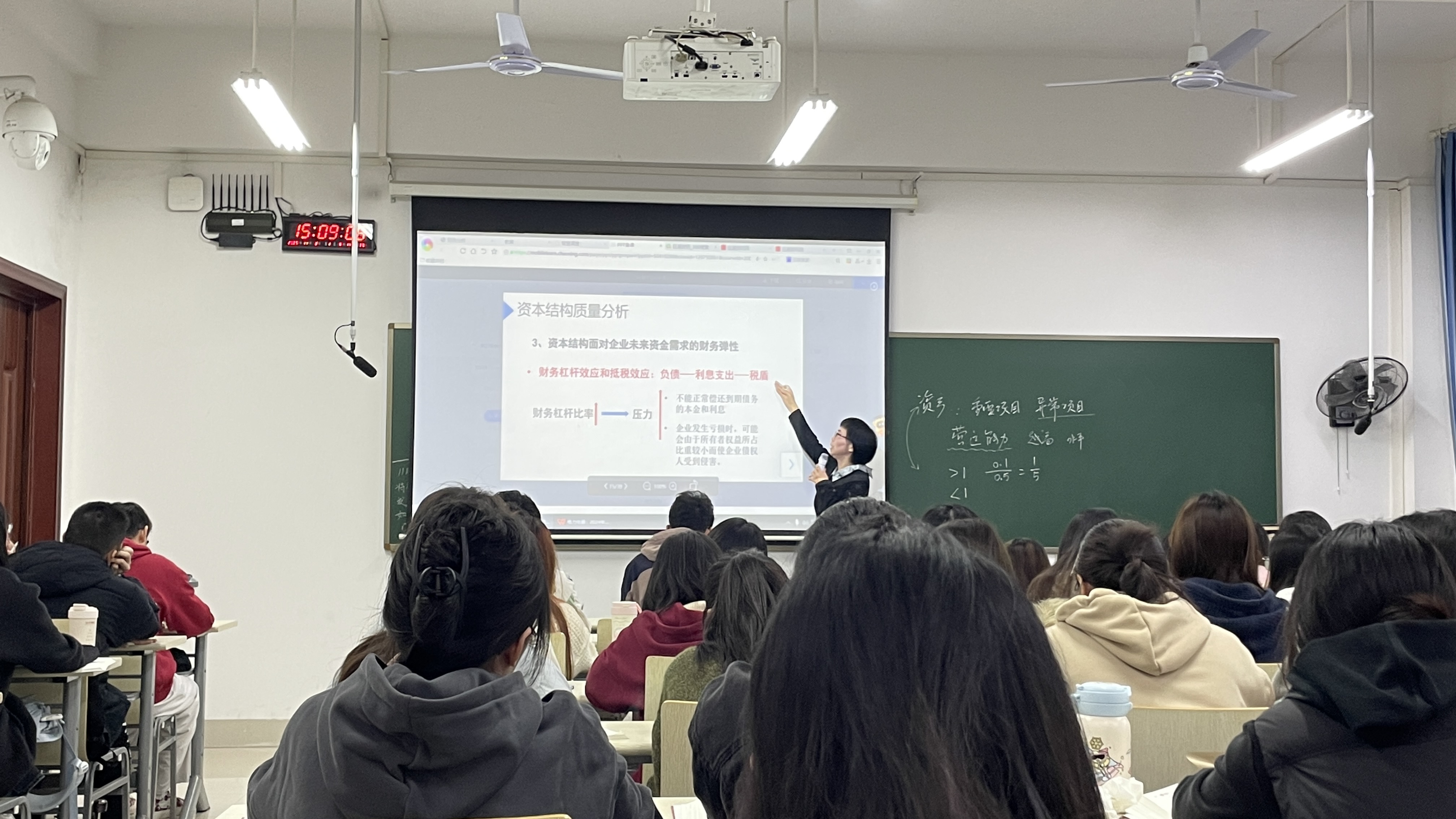 在案例深度解析过程中,郑槐淼老师巧妙穿插前置知识点回顾,为学生构建完整的知识体系。当分析“资本结构中债务成本和财务风险”时,同步回顾“资产的变现能力、周转效率”等前置知识点;在探讨“资本的期限结构与资产结构的协调性”时,衔接“财务杠杆效用”核心原理,通过“案例触发+知识点呼应”的方式,帮助学生巩固旧知、理解新知,实现知识的融会贯通。